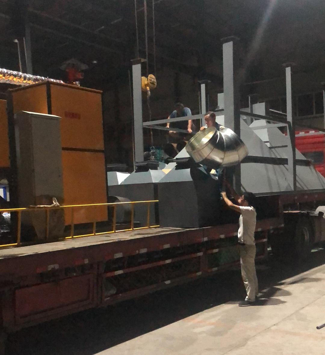 昨天下班以后物流過來提貨了,發走一套除塵器,催化燃燒設備一套,引風機等,裝貨到很晚。布袋除塵器型號是DMC-360型,催化燃燒里面的過濾箱,吸附床,冷風機等設備整套發走。
