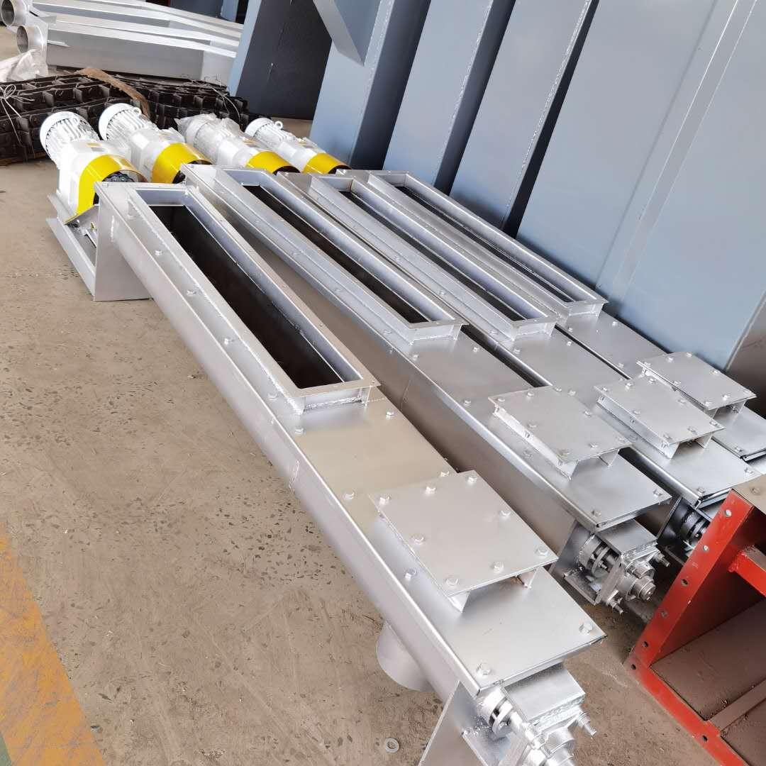 螺旋輸送機的運行原理是通過螺旋軸的轉動,把物料在葉片推力的作用下沿著輸送機的機體向前移動。物料在中間軸承的運移,則是依靠后面前進著的物料的推力。所以,物料在輸送機中的運送,完全是一種滑移運動。一般我們設計的螺旋輸送機的進料口與輸送機的驅動裝置在同一方向,便于推動物料,使輸送機的動力減輕。葉片的面型根據輸送物料的不同有實體面型、帶式面型、葉片面型等型式。螺旋輸送機的螺旋軸在物料運動方向的終端有止推軸承以隨物料給螺旋的軸向反力,在機長較長時,應加中間吊掛軸承,以免因為螺旋軸和葉片過長,加上自身重力時間長了,出現同心度偏差問題。我們設計的輸送機可以根據客戶的要求做進出料口的方向,數量,及螺旋葉片的旋向。
