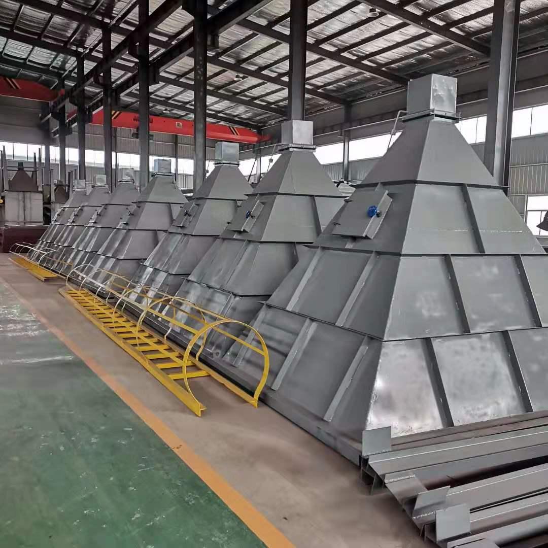 布袋除塵器的灰斗分為多種形式的卸灰方式,一般我們做的是一個錐形卸灰口,像這一類的我們都配套一臺翻板閥或者卸料器類的卸灰裝置。它適合適種類型的除塵器單機布袋除塵器,濾筒除塵器,旋風除塵器及氣箱除塵器。另一種是槽型灰斗,這一類的灰斗應用的比較少,因為它的長度比較長,每個灰度的長度對應的是兩個或者兩個以上的電場,像這類的都是配套螺旋輸送機或者刮板機來進行輸灰的,它的目的是避免沾灰和堵灰的。