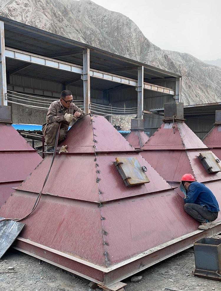 我公司最近在新疆銀礦廠合作的氣箱脈沖布袋除塵,由于這套除塵器屬于大型設備,如果設備整體運輸的話會出現超高超寬情況,所以我們與現場協商把除塵器所有板材在廠里切割完成,由17.5米板車運輸至現場,帶著所有配套設備以及現場制做所需工具。