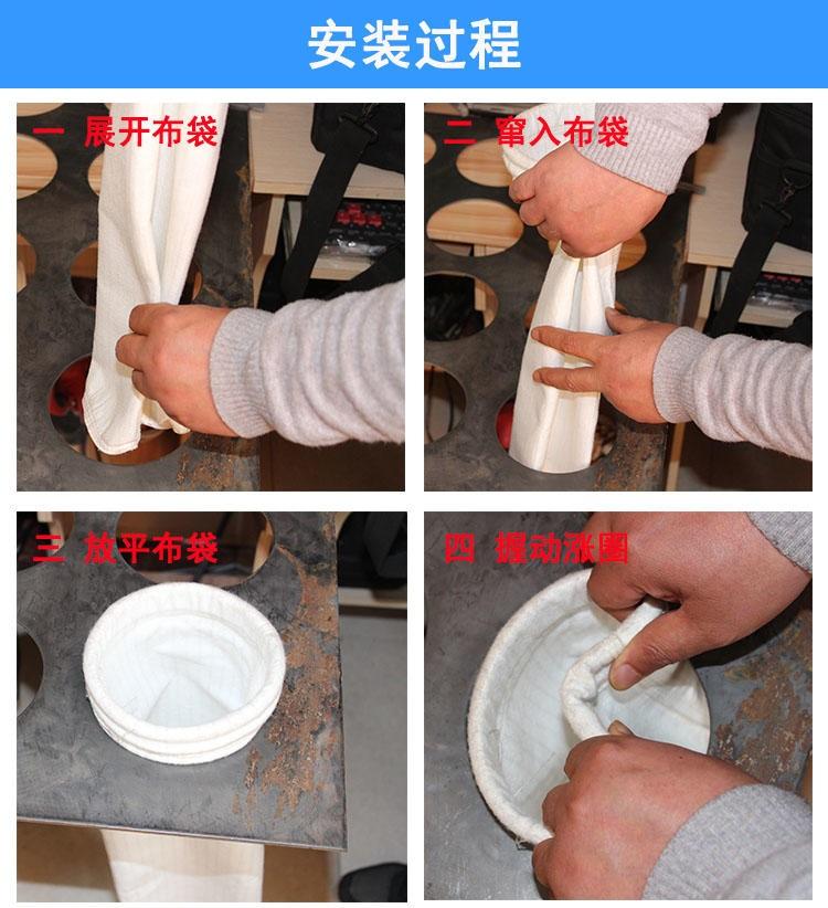針對于除塵布袋的型號這一塊,很多客戶在購買除塵布袋的時候會問有沒有現貨,對于這一點我想跟大家說一下,不管什么樣的除塵布袋都是沒有現貨的,都需要根據當時的實際情況進行定制,除塵布袋直徑的確定需要除塵器花板的具體尺寸來確定,除塵布袋樣品的尺寸用數顯卡尺也可以精確他的內徑。除塵布袋與除塵器花板的安裝尺寸要精確到5毫米以內,不僅布袋在固定的時候比較方便,同時也減少了布袋進口的磨損。