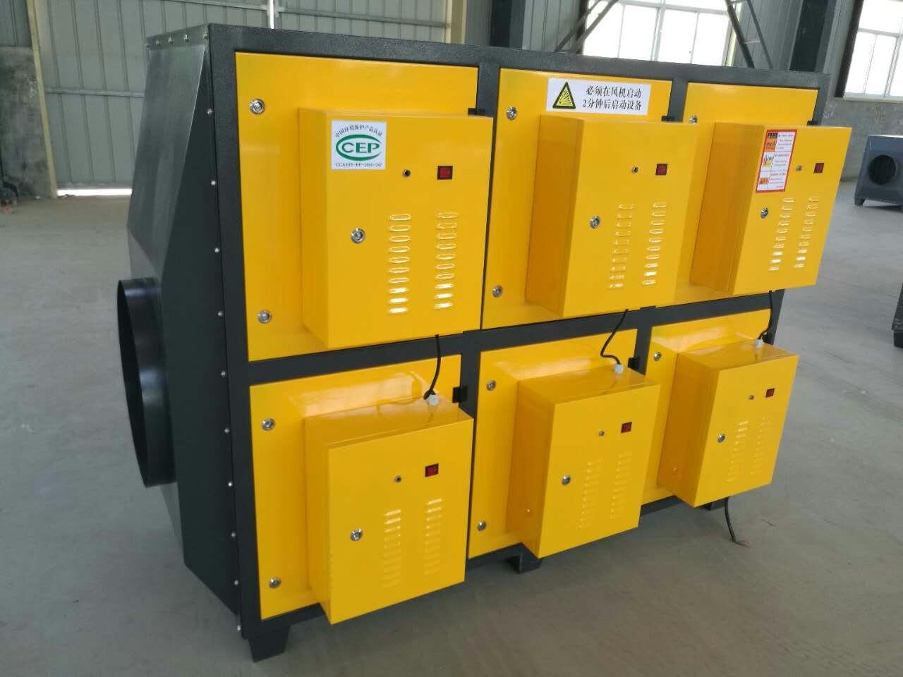 它是在電催化總的設計概念下,分三個即獨立又混成的激發系統:微波激發區、等離子激發區、 板激發區。每個激發區有它特定的功能,但在原理上有它相似的地方。它有3至9個微波激發單位,根據被處理風量的不同,數量不同,微波由于它的頻率相對比較高,在納秒的時間內有效作用于被處理空間(區域),由于微波的功率相對較小,因此在激發能力上也就是說電子的獲能躍遷能力上有限,它的設計只是把微波作為初頻激發源,在處理過程中作為一種預激發能。由于微波的預激功能, 大的提高等離子體區, 板區的激發能力和處理效果。由于微波技術的運用,它在同類設備的比較中顯得設備精煉而效果優越。它有40支至240支充有特殊氣體的無 管組成的低溫等離子體激發區,低溫等離子體區是工藝的核心技術,國外諸多科研機構室稱在常壓下實現低溫等離子體。